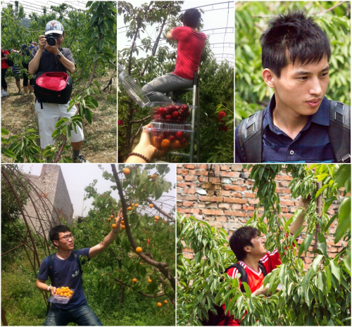 2014年5月30日,大岳咨詢組織員工到順義區(qū)采摘櫻桃。這一天陽光明媚,氣溫高達(dá)40攝氏度,但依然沒有擋住大家對(duì)大櫻桃的向往。經(jīng)過顛簸的車程,終于到達(dá)櫻桃園。驚喜的發(fā)現(xiàn)櫻桃園中還有杏樹。大家立刻兵分兩路,一路沖向紅櫻桃,一路沖向黃杏兒。一會(huì)兒的功夫,所有人就都捧著滿滿兩盒成果滿足的走了出來。中午我們還吃了當(dāng)?shù)氐霓r(nóng)家飯,菜品豐富,味道香濃,尤其是特色烤羊排,外酥里嫩,堪稱人間美味。